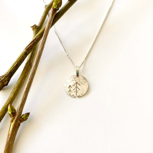 Barkhamrad cirkel i återvunnet silver, Halsband